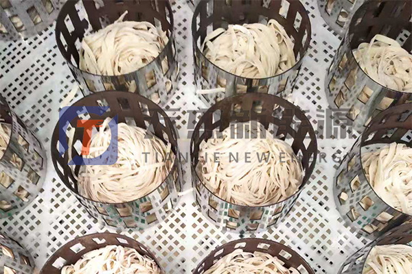 一、自然干燥:就是在風(fēng)和日暖(氣溫不低于20℃)相對濕度 60%一 80%的地區(qū)或季節(jié),將濕面條掛在掛桿上,自然風(fēng)干。由于烘干時間長,因此產(chǎn)品質(zhì)量好且不易出現(xiàn)酥面。