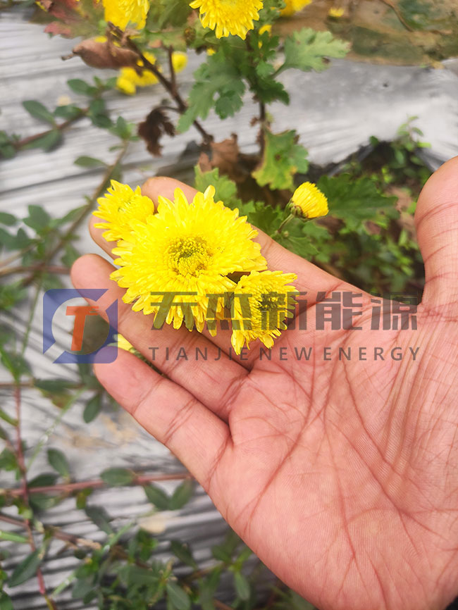 烘干好的菊花等待一下稍微冷卻一些后推出菊花烘干機(jī),然后包裝入袋。
