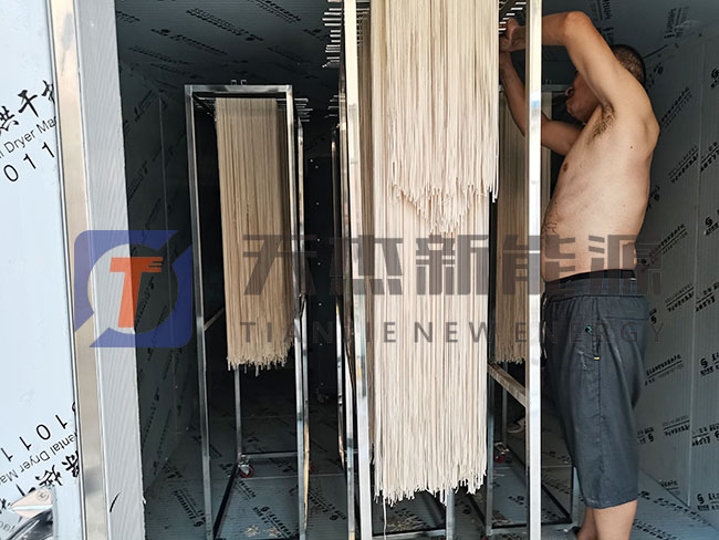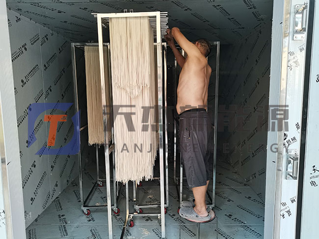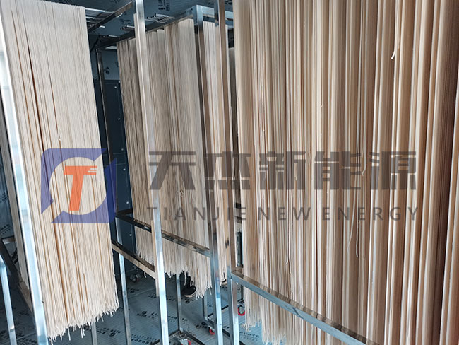 剛進(jìn)入掛面烘干機(jī)內(nèi)的濕面條長度一般在1.4m左右,掛面烘干房若只采取高溫,又會加快表面汽化速度,因此空氣能掛面烘干機(jī)此時可升高溫度,下降濕度.