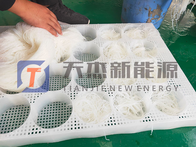 5)將在粉條烘干機(jī)③溫度區(qū)出來后的粉條在常溫下自然冷卻,然后包裝即可。