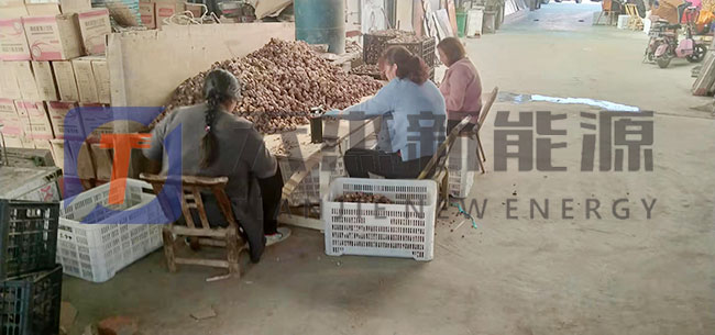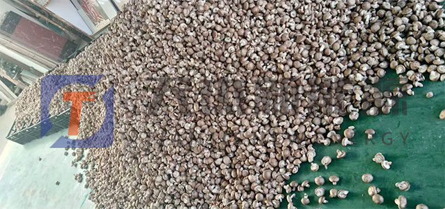 香菇烘干機怎么用:駐馬店香菇烘干機客戶使用的是電能香菇烘干機,用戶正在選備篩選香菇成品。篩選分堆后的香菇成品料