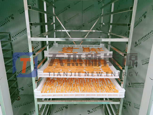紅薯切片烘干機(jī)采用全自動智能化控制,由用戶自行設(shè)定烘干溫度及烘房濕度。當(dāng)紅薯切片烘干機(jī)溫度達(dá)到所設(shè)定烘干溫度時,加熱機(jī)組自動停止工作,此時加熱機(jī)組不再消耗電能;當(dāng)紅薯切片烘干機(jī)溫度低于設(shè)定溫度時(如低于設(shè)定溫度5℃時),加熱主機(jī)自動開啟工作開始供熱。家用紅薯烘干機(jī)可用于紅薯塊、紅薯片、紅薯條、紅薯丁等塊狀、條狀、片狀等物料烘干。烘干時間根據(jù)物料形狀大小、厚度不同在10-20小時不等。采用低溫(烘干溫度在50-75℃之間)烘干技術(shù)、烘干的成品顏色好,外形美觀。家用紅薯烘干機(jī)烘干成本低,設(shè)備使用簡單,采用電作為能源,生產(chǎn)環(huán)境衛(wèi)生,符合食品生產(chǎn)加工的要求。