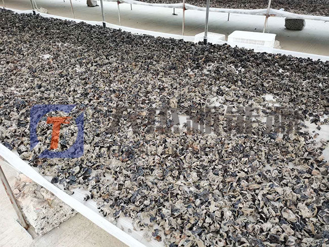 5. 恒溫保持5~8小時后將木耳烘干機溫度升55℃-60℃后整體烘干;黑木耳烘干八成時,取出烘篩攤晾2小時后繼續(xù)烘干,待全部黑木耳烘干后即結(jié)束。