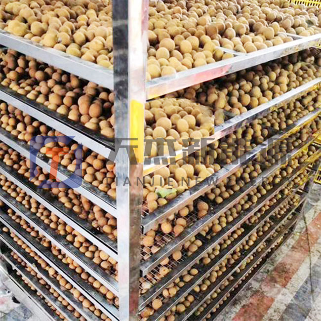 阜陽龍眼烘干機客戶烘干龍眼實拍現(xiàn)場 將新鮮采摘的龍眼均勻放入烘盤中推入阜陽龍眼烘干機機械 烘干后的龍眼